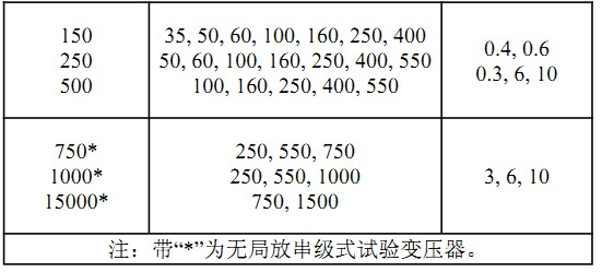 b)額定容量與高、低壓繞組電壓配合建議采用表1的推薦值,特殊要求時,由制造廠與用戶雙方協商確定。