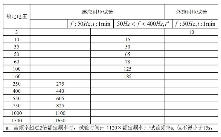 a)高、低壓繞組、測量繞組電氣絕緣強度按表2及表3規定;