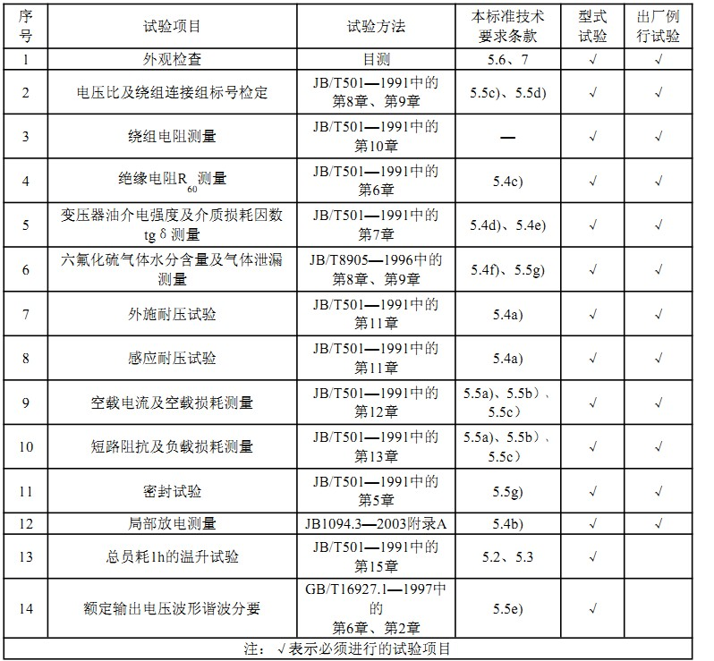 出廠例行試驗的項目和技術要求按表6的規定進行。制造廠應提供本部分規定的型式試驗報告和出廠例行試驗報告給用戶。